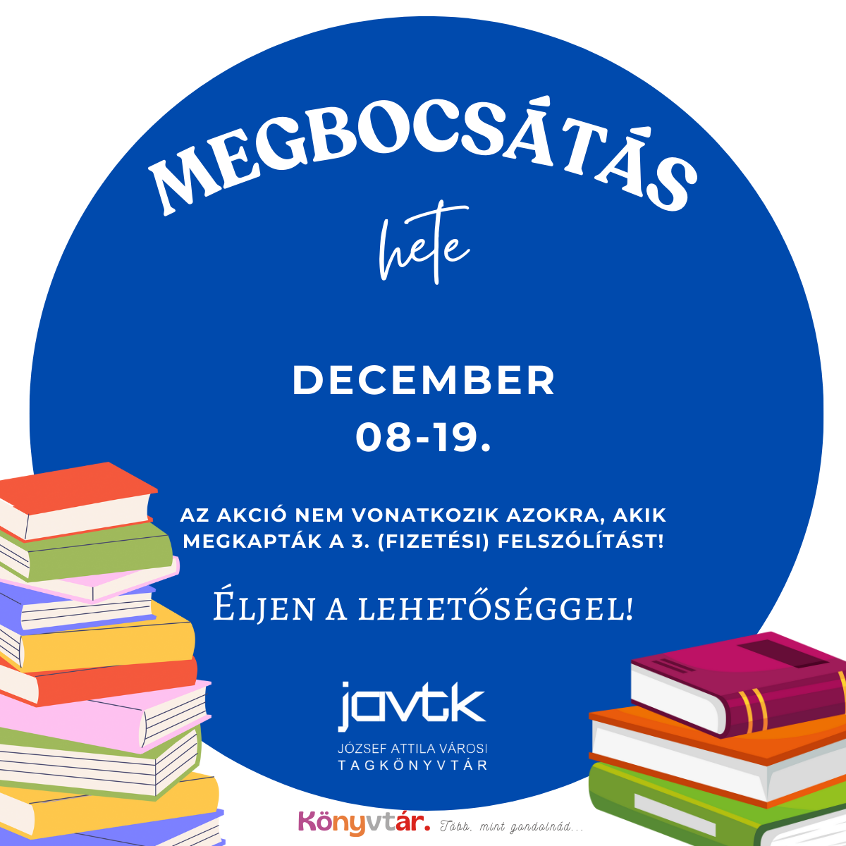 December 8-23. között lehetőségük van arra, hogy késedelmi díj fizetése nélkül visszahozzák a könyvtárba a dokumentumokat!