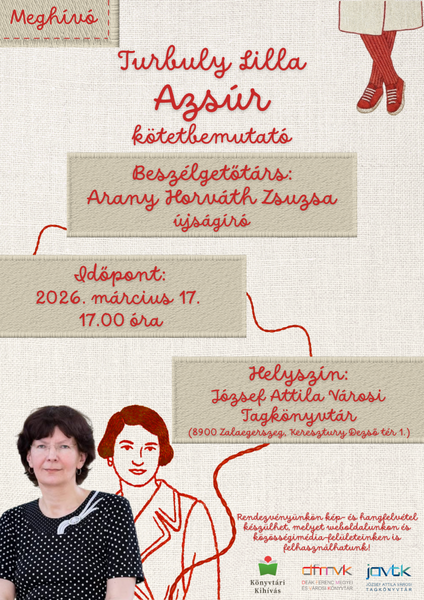 Szeretettel várjuk könyvtárunkba Turbuly Lilla Azsúr című könyvének első hivatalos bemutatóján.