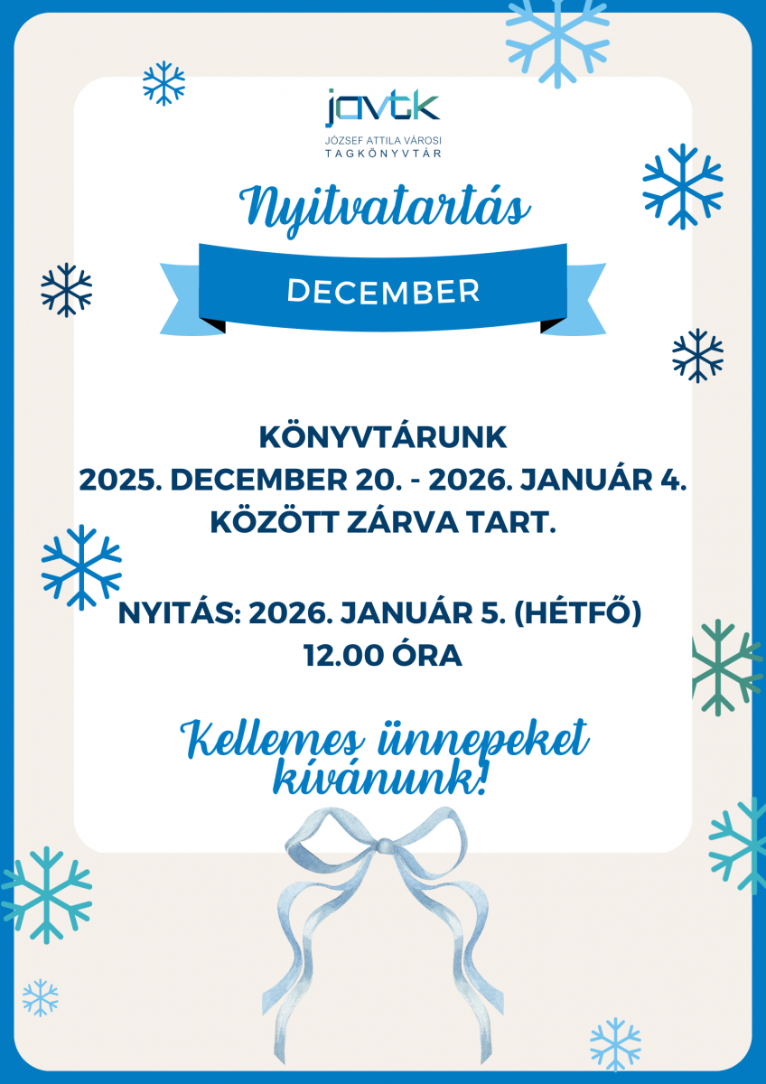 | 2025. december 20. - 2026. január 4. | ZÁRVA |