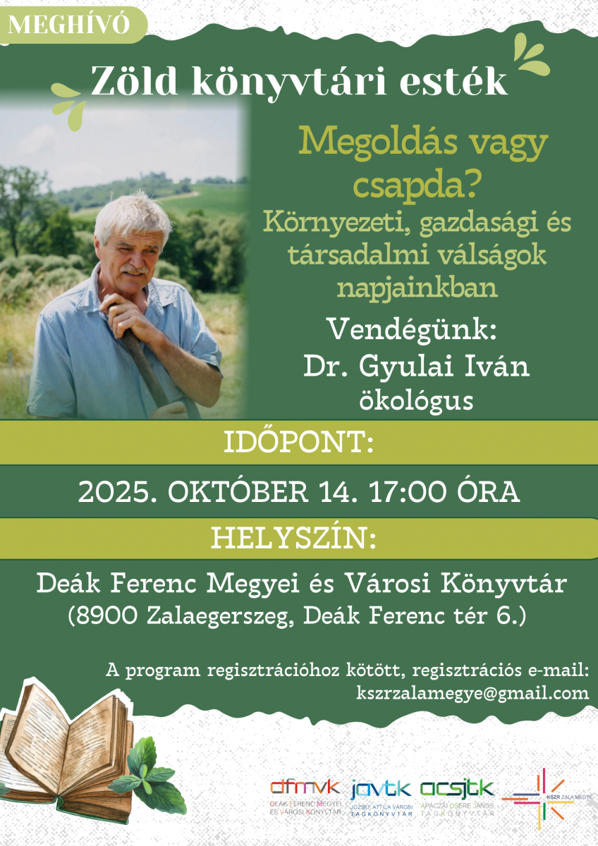 Örömmel értesítünk, hogy „Zöld Könyvtári Esték” címmel útjára indítunk egy sorozatot.