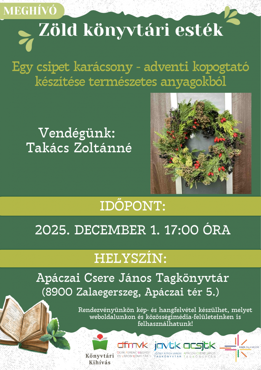 Örömmel értesítünk, hogy „Zöld Könyvtári Esték” címmel útjára indítunk egy sorozatot.